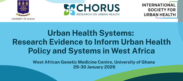 Co-hosted by the College of Public Health, University of Ghana, the CHORUS Research Programme Consortium, and in collaboration with the International Society for Urban Health, this event aimed to share and debate research evidence generated by the CHORUS Research Programme Consortium in cities in Ghana, Nigeria, Nepal and Bangladesh, and urban health researchers from across West Africa.